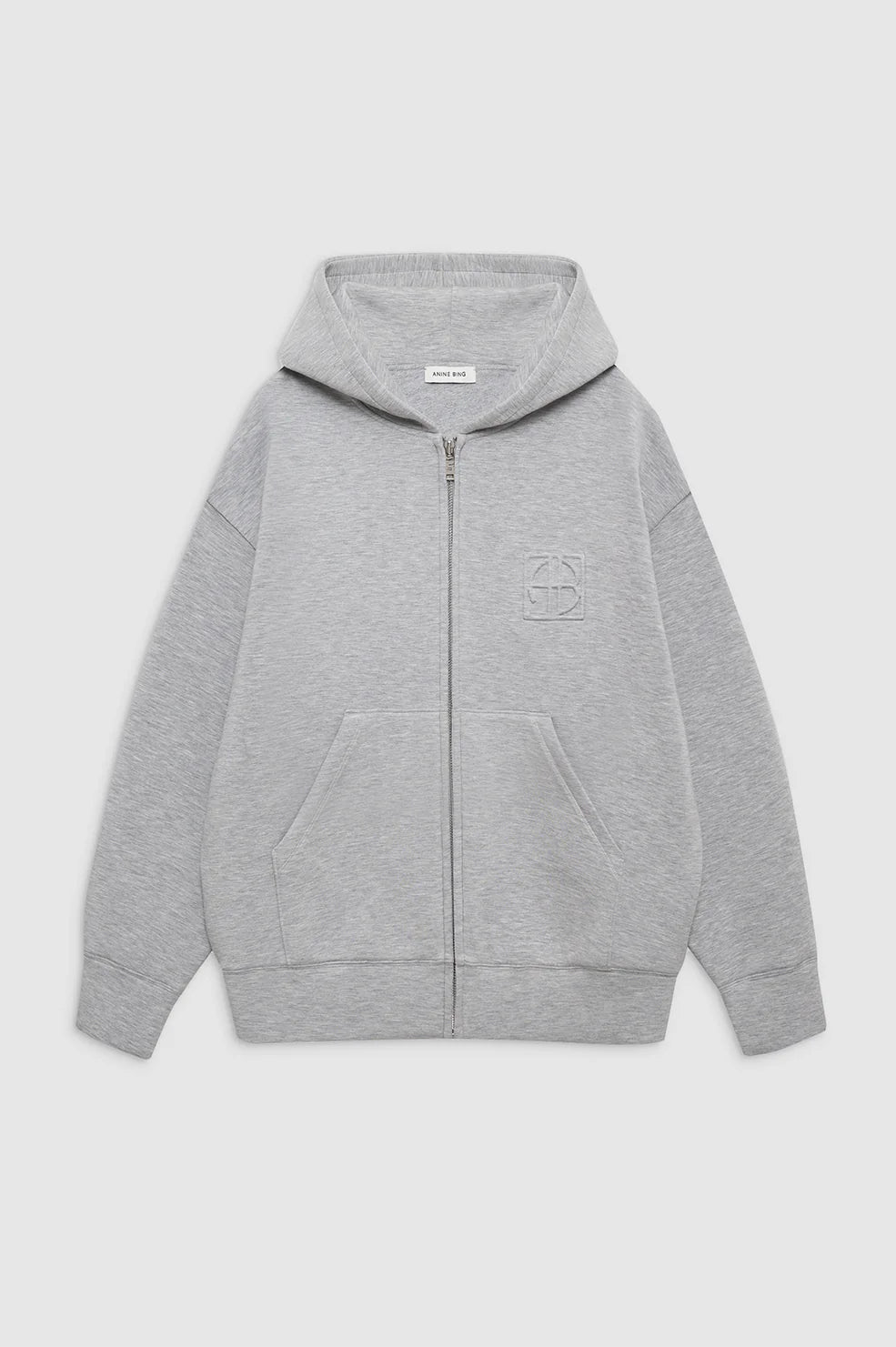 Anine Bing Bond Zip Up Hoodie Framed Monogram - Heather Grey