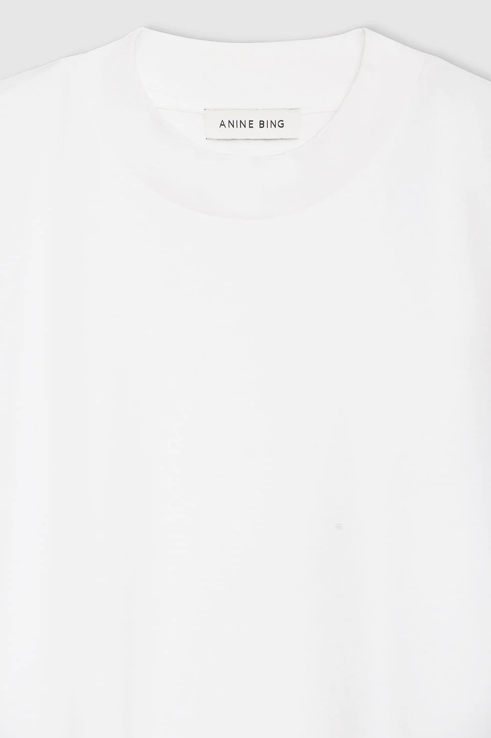 An elevated muscle tee crafted from a heavyweight cotton vintage jersey featuring a mock neckline and folded detailing at each sleeve. Finished with a small stitched ANINE BING monogram charm at the wearer's bottom-left hem.