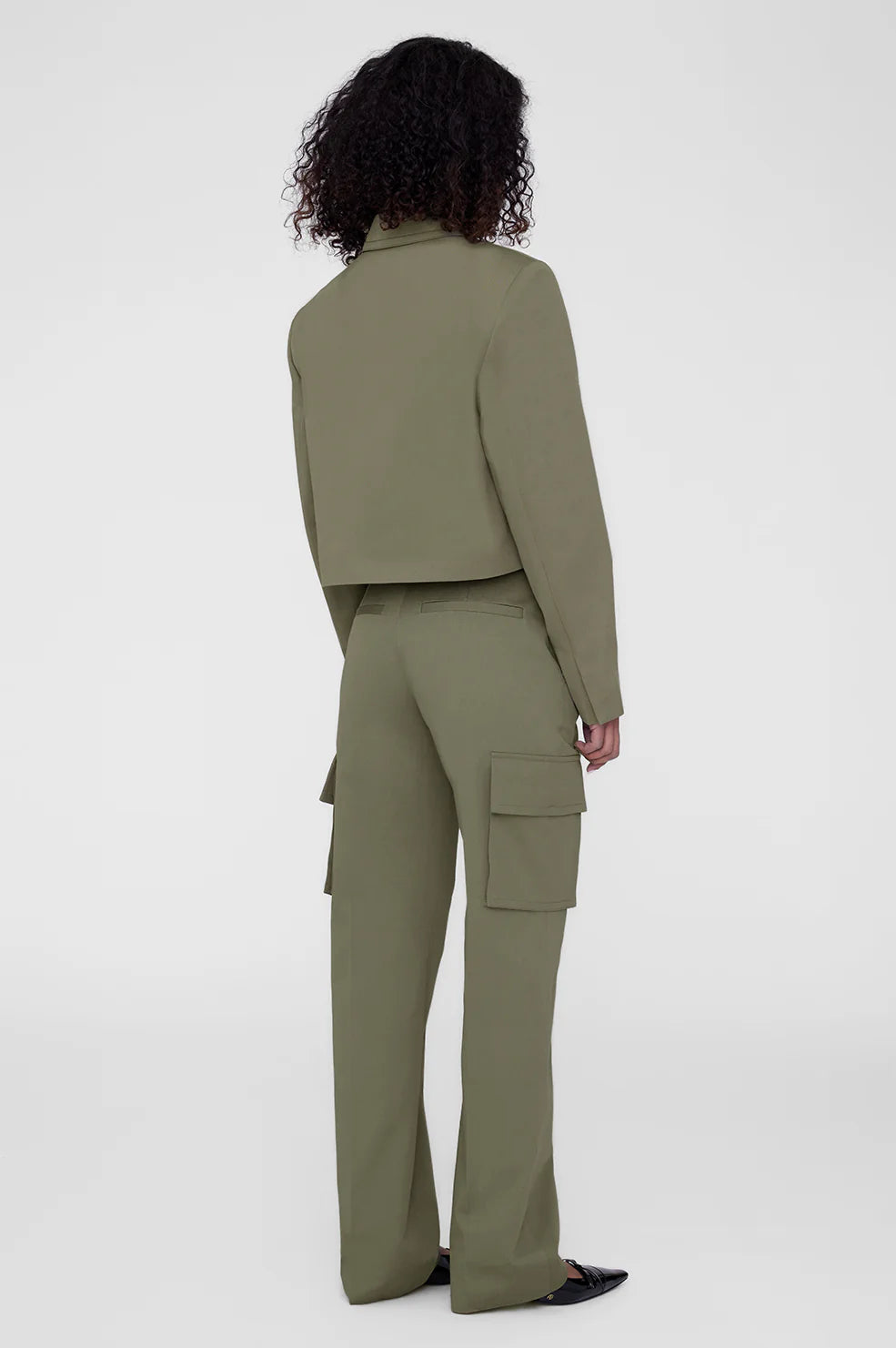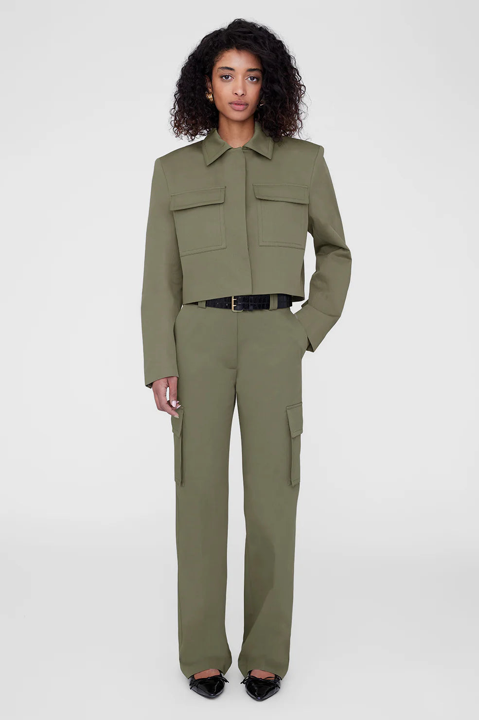 A modern take on the iconic safari jacket silhouette. The Dayton Jacket in olive is constructed from a light-to-midweight 100% cotton-twill fabrication with a smooth hand and slight sheen. Its utilitarian silhouette is fully lined and features two patch pockets at the chest and a hidden placket down the center front and at each wrist.