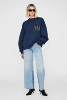 The Miles Oversized Sweatshirt Letterman is an oversized crewneck pullover made from midweight 100% organic cotton fleece. This relaxed casual features a custom ANINE BING letterman chenille patch graphic at the chest.