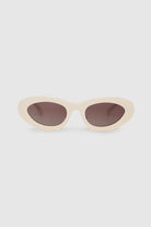 The Roma Sunglasses feature an oval, cat-eye shape with acetate frames and grey gradient lenses polarized with UV400 protection. Accented with a gold-tone ANINE BING monogram at each temple.