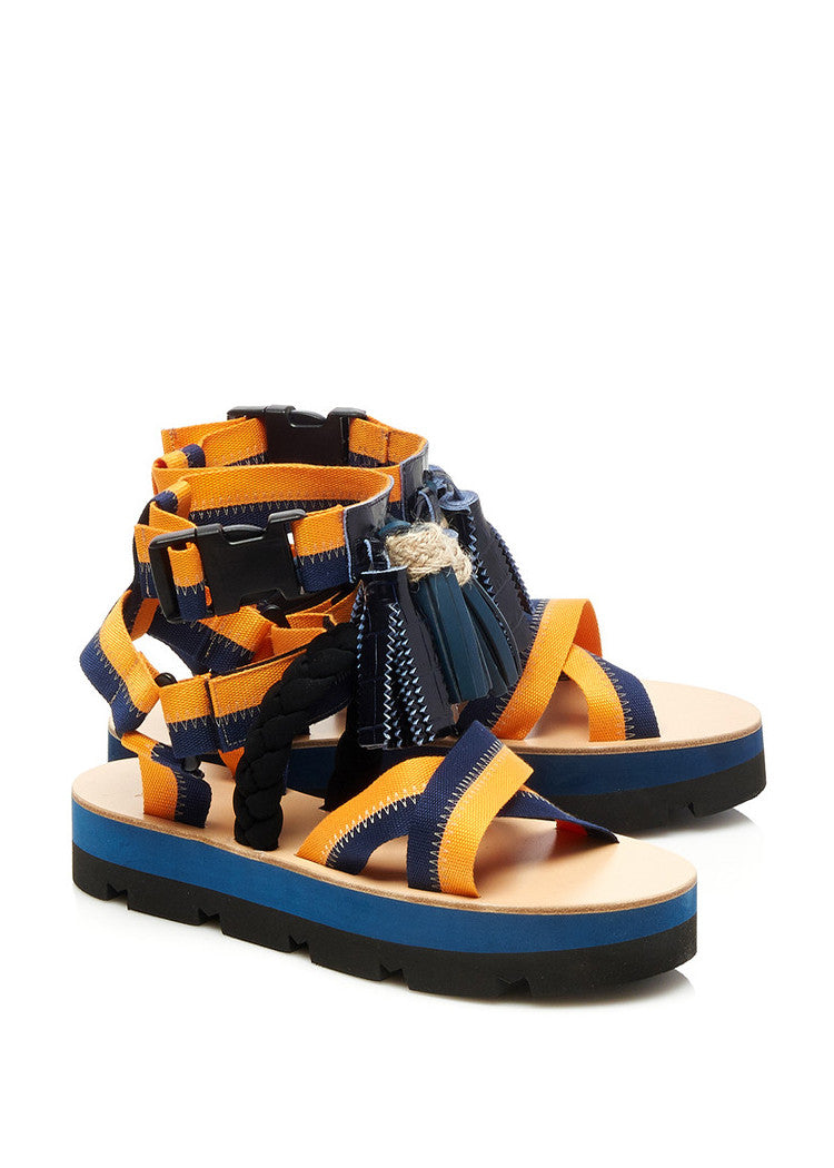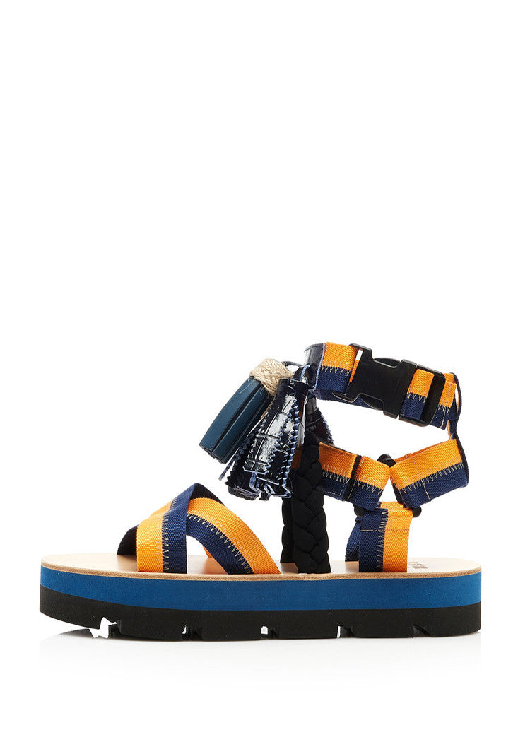 MSGM Multi Tassels Platform Sandals - Orange/Blue