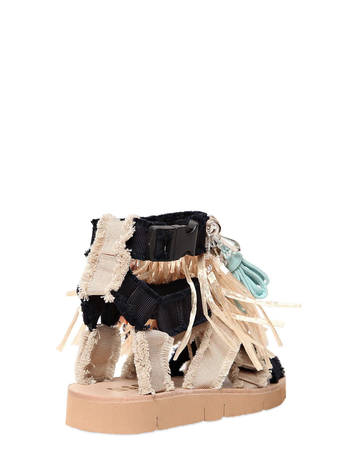 MSGM Fringed Canvas Sandals - Multi