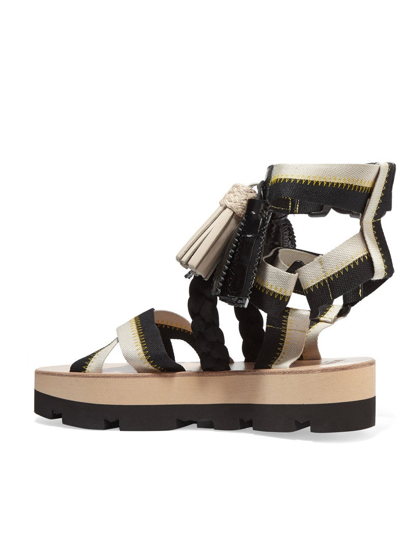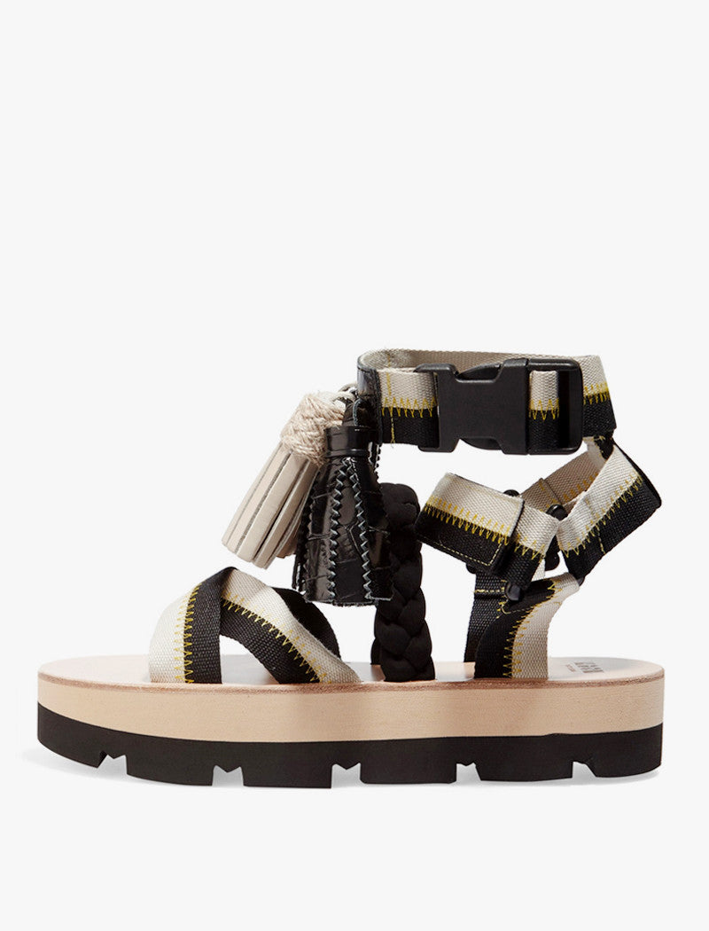 MSGM Multi Tassels Platform Sandals - Beige/Black