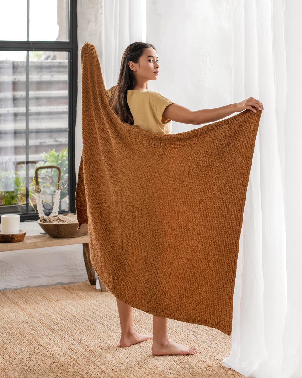 MagicLinen CINNAMON WAFFLE THROW / COUCH COVER / BLANKET