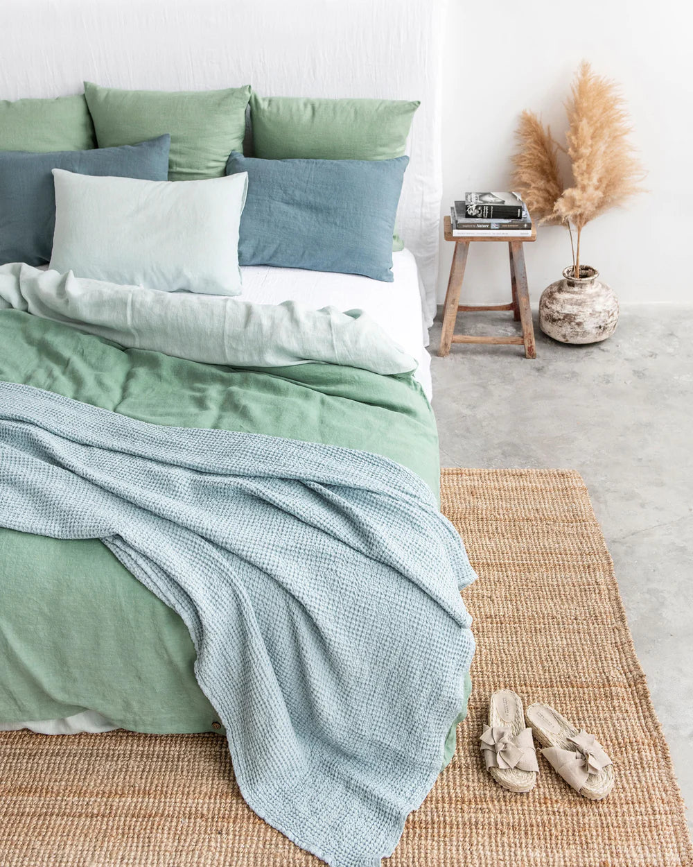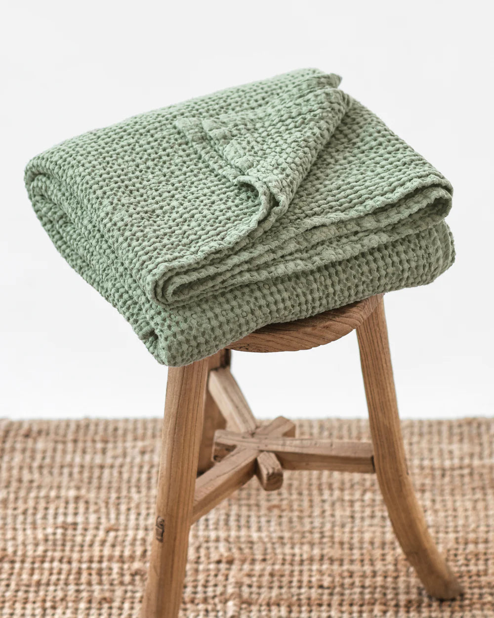 MagicLinen PISTACHIO GREEN WAFFLE THROW / COUCH COVER / BLANKET