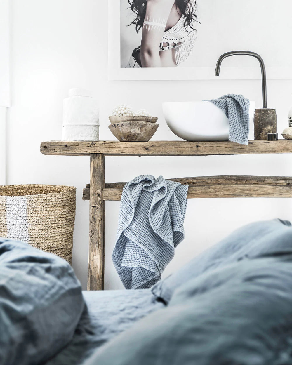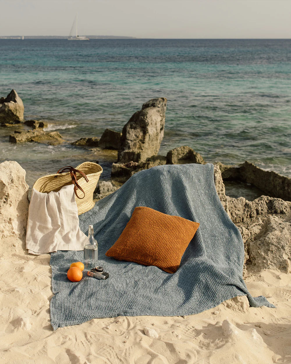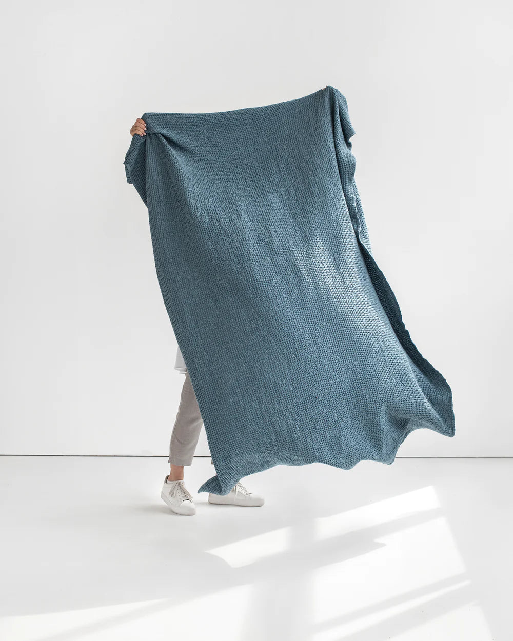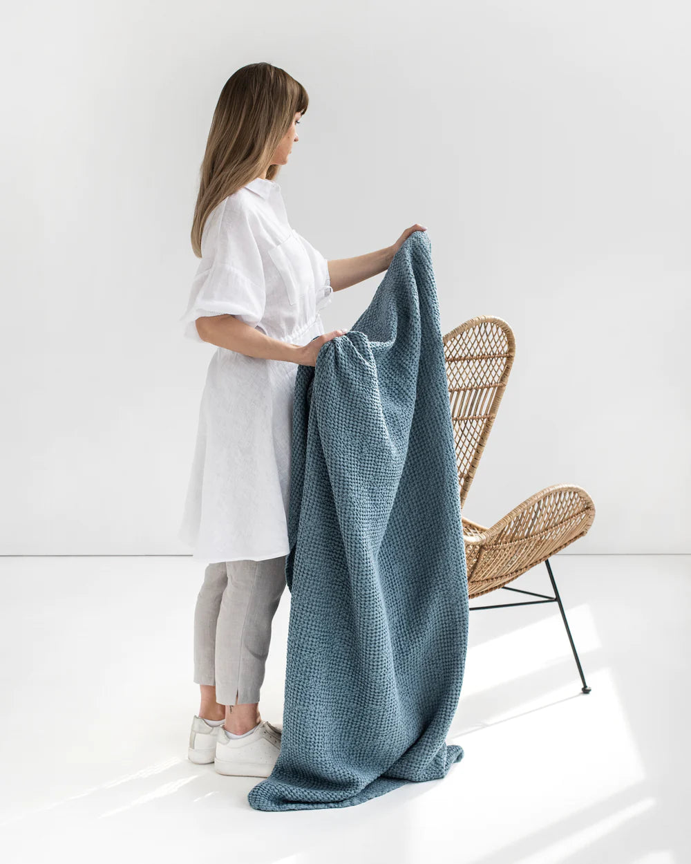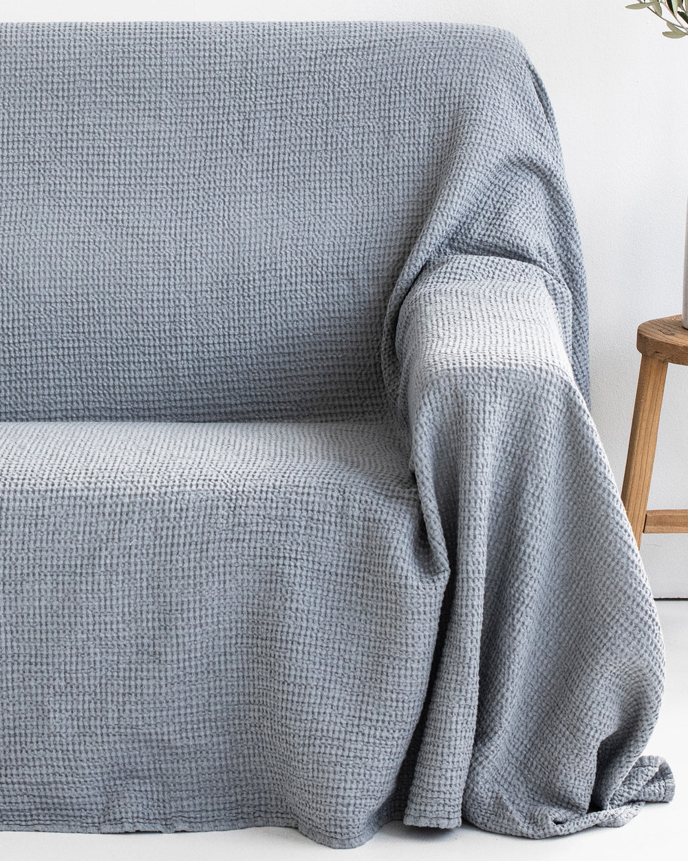 MagicLinen DUSTY BLUE WAFFLE THROW / COUCH COVER / BLANKET