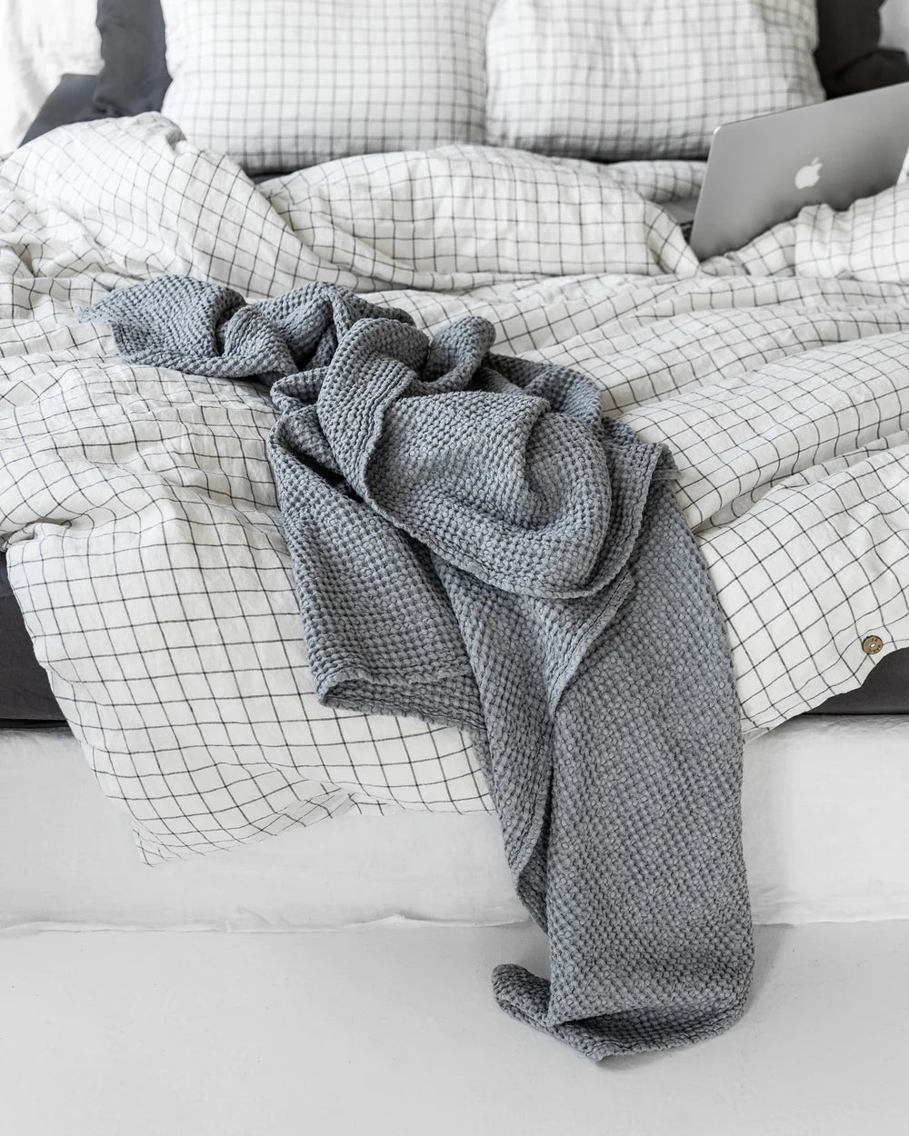 MagicLinen GRAY BLUE WAFFLE THROW / COUCH COVER / BLANKET