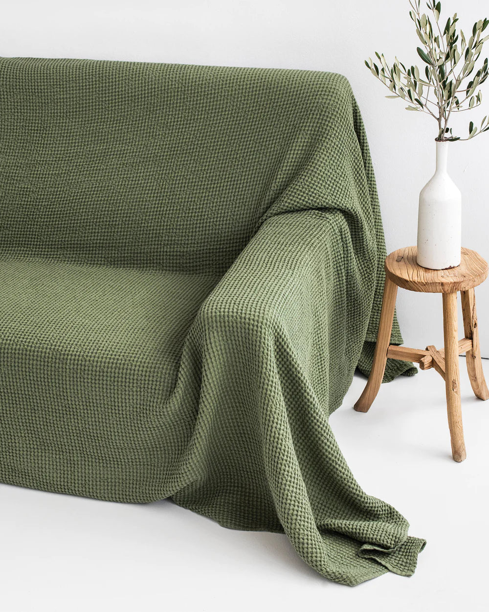 MagicLinen FOREST GREEN WAFFLE THROW / COUCH COVER / BLANKET